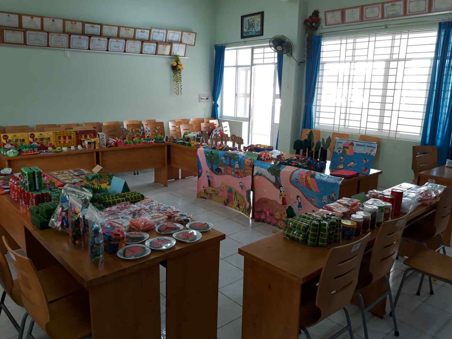 Thực hiện kế hoạch của nhà trường, ngày 17 tháng 02 năm 2020 giáo viên trường mầm non Tân Long đã thực hiện triển lãm đồ dùng đồ chơi tự