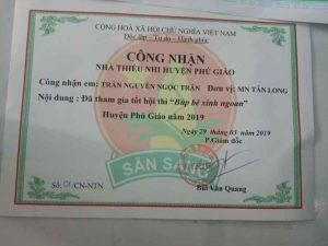 - Kết quả qua 2 phần trình diễn năng khiếu và thời trang bé Trần Nguyễn Ngọc Trân đạt giải khuyến khích hội thi “Búp bê xinh ngoan” Năm học 2018-2019.