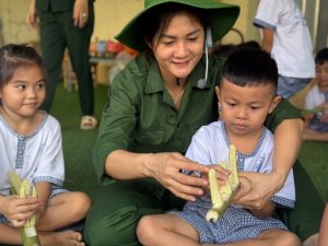 Thông qua hình ảnh các em trong trang phục chú bộ đội, với nét hồn nhiên nhưng đầy nghiêm túc, hoạt động đã góp phần giáo dục trẻ về truyền thống yêu nước, lòng biết ơn và niềm tự hào dân tộc, hướng các em trân trọng những hy sinh to lớn của các thế hệ cán bộ, chiến sĩ Quân đội Nhân dân Việt Nam trong sự nghiệp bảo vệ Tổ quốc.